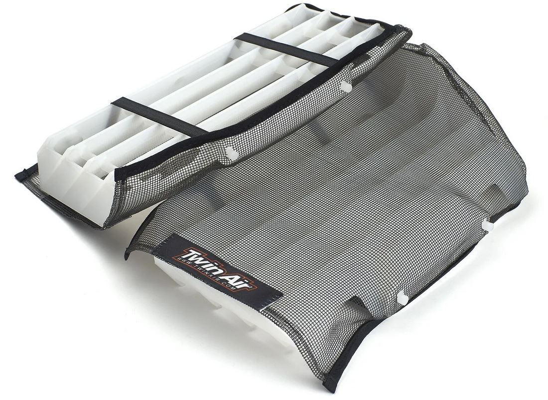 Der Twin Air Kühler-Filter besteht aus einem Nylon beschichteten Glas-Faden. Das Material des Filters verhindert ein Festsitzen von Schlamm und Schmutz.
